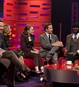 Emma Stone during filming of the Graham Norton Show at The London Studios, south London, to be aired on BBC One on Friday on January 12, 2017. Previous Post Emma Stone at 'La La Land' Premiere in London on Jan 12 Next Post Emma Stone & Ryan Gosling Press Junket in London; Interview Videos