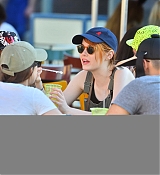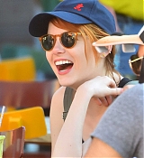 Emma Stone is all smiles as she spends time with friends and a mystery man at Disneyland on April 7, 2015. The spiderman actress was seen drinking a margarita at California Adventure before riding California screaming followed by a ride on the Radiator Springs Racers. Emma was all smiles and stayed close to her friends including one guy, who can be seen sitting next to her on the Carsland ride.