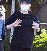 In photos obtained by the DailyMail, Stone was spotted cradling her growing baby bump on a walk with a friend in Los Angeles on December 30. She sported all black and a white mask during the outing.